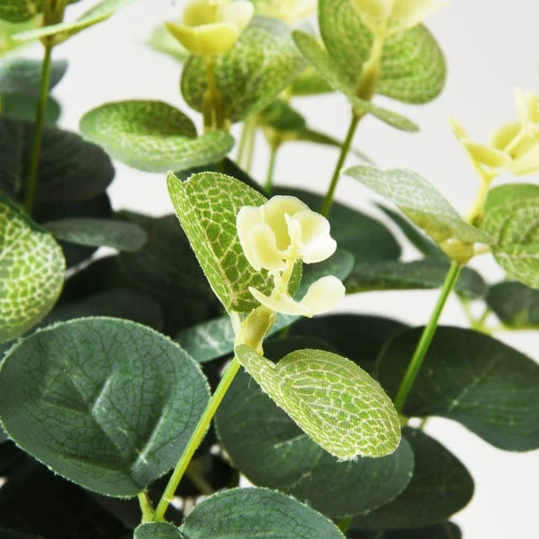 Featuring a white cement pot, this artificial Eucalyptus plant will bring a clean, minimalistic touch to your home.