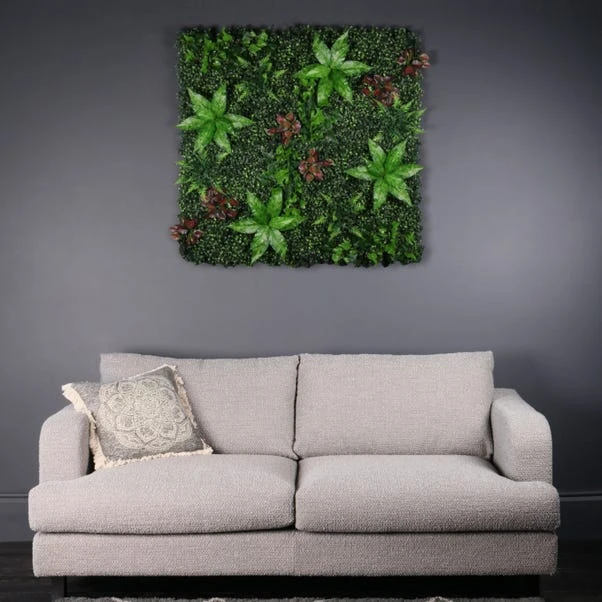 Make a statement indoors or outdoors with this vibrant artificial living wall panel, featuring a variety of lush green and red foliage to brighten up any space.