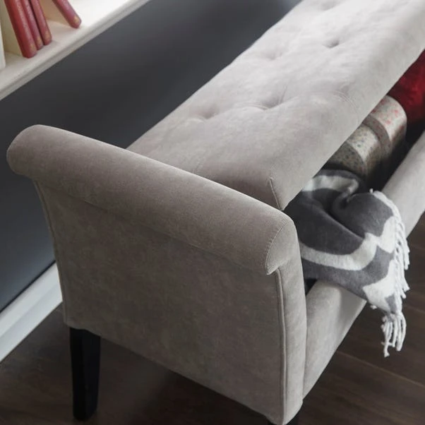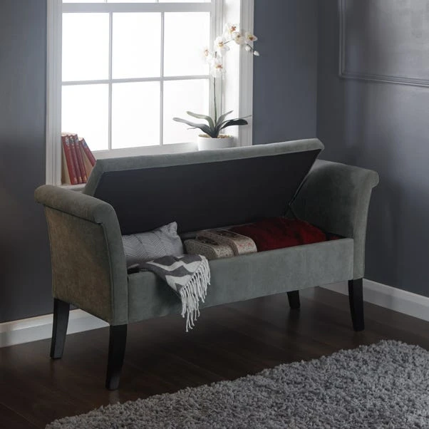 The Balmoral Chenille Upholstered Window Seat will deliver an opulent touch of comfort and style to any room. It features a lift up storage compartment and elegant wooden legs. Comfort is taken care of thanks to the foam filled cushioning and soft chenille fabric finish.