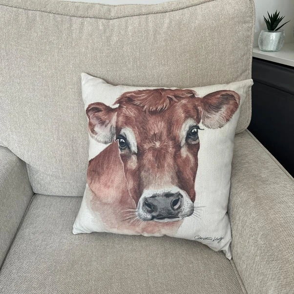 The Jersey Cow Square Cushion adds a charming accent to any room with Christine Varley’s delightful illustration of a Jersey cow. The 43cm cushion, crafted from linen-feel polyester with a contrast back panel, features luxurious recycled fabric filling and a zip-fastened removable cover, made in the UK.
