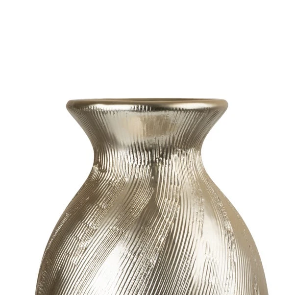 Featuring a textured finish in a neutral cream, with a subtle gold trim to the outer edge, our slender vase will suit a range of interiors.