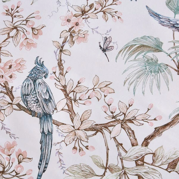 Adorned with beautiful florals and birds, our Dorma Lillian duvet cover set features gorgeous details which will give your bedroom a fresh uplift. The statement Lillian design is complemented by a dusky lilac colourway reverse, perfect for interchangeable styling where desired. Finished with a neatly piped edge, this duvet cover set is crafted from a 300 thread count cotton sateen that ensures nightly comfort. The duvet cover is then complete with a secure zipper closure that makes changing the covers easy.