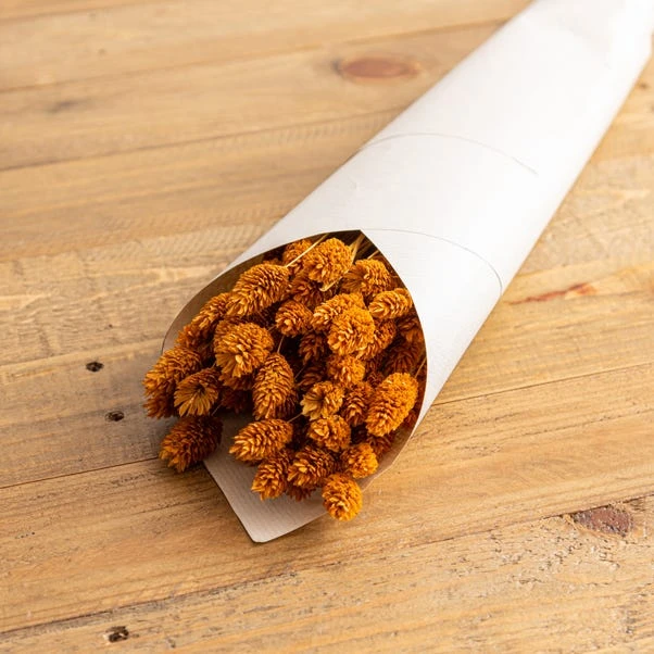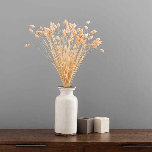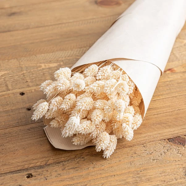 Presented beautifully in a paper wrap, this bundle of dried Phalaris will add a modern touch to your home. Dried flowers bring the outside in, making a great decoration that last a long time, making it a great gift for you or your loved ones. The natural piece, alongside the bleach colourway makes this the perfect decoration for displaying in your favourite vase or pot.
