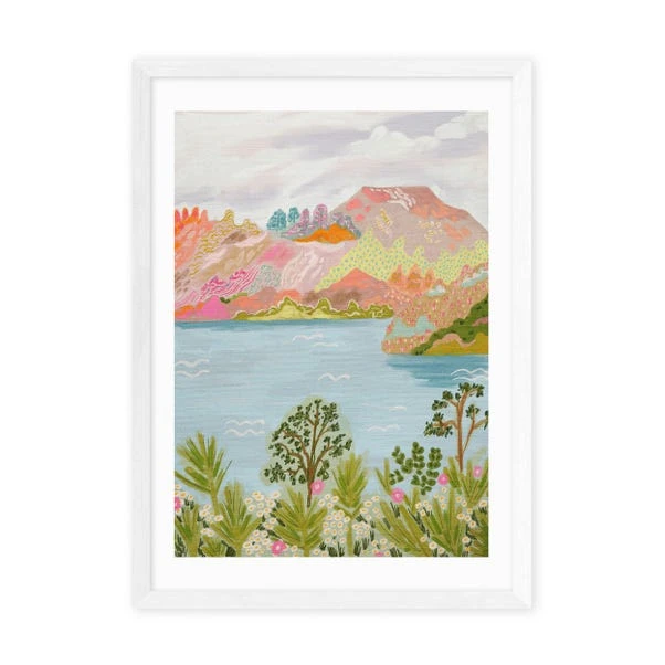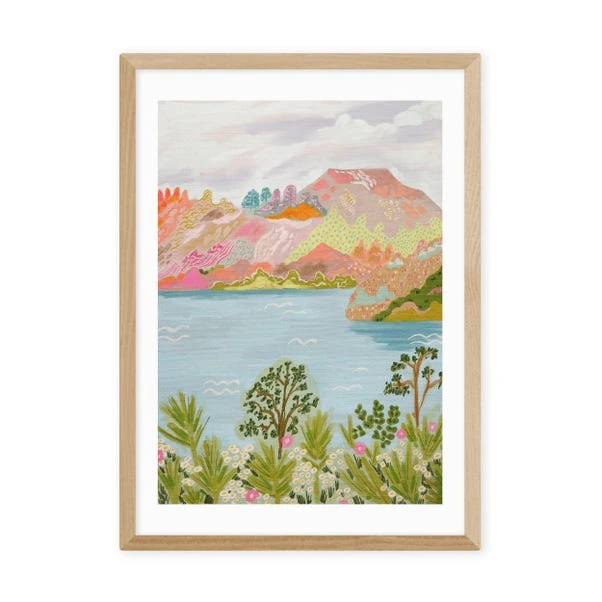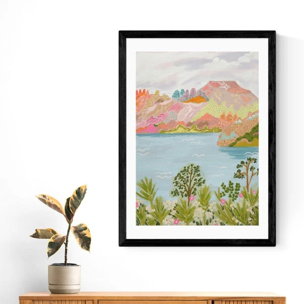 Bring a sense of tranquility and calm to your space with this Sendu Print, featuring a restful landscape scene in calming colours with a block/print style. It’s available in a range of sizes, and both unframed or in a choice of solid obeche wood frames – choose the best option for your style.