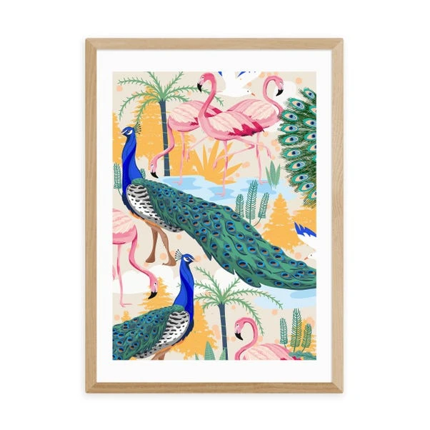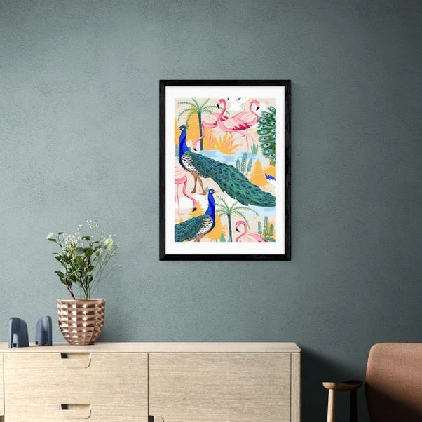 Fill your walls with fun colours, exotic birds and a playful illustrative style from 83 Oranges artwork. Perfect for situating in a living room or bedroom, this piece of artwork that is guaranteed to draw attention and is made to last as it uses a Giclee printing process to stay vibrant and prevent fading over years. Each design is available in four print sizes and a variety of frame options, including unframed, so you can display your artwork however you wish.