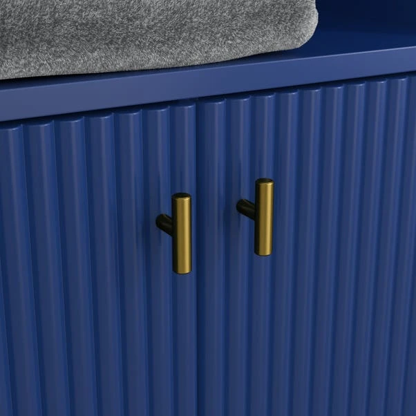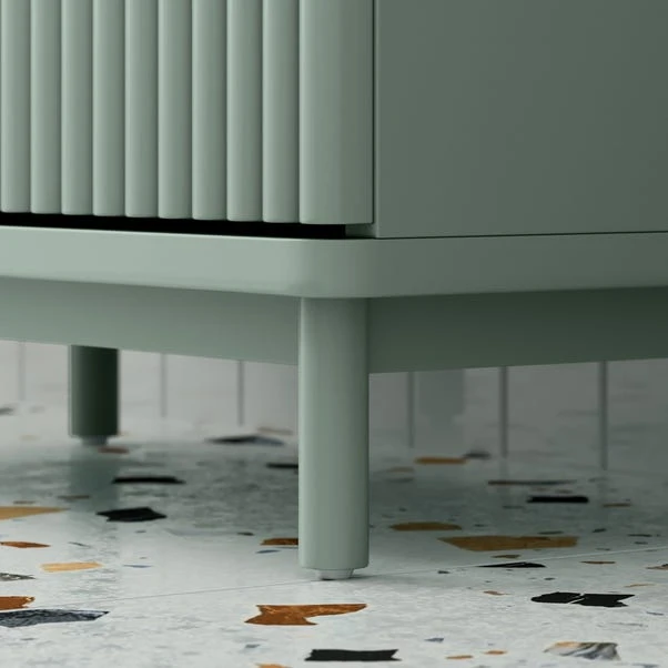 Featuring soft-closing doors and hinges for quiet and safe operation, this cabinet showcases a matte painted finish and a modern fluted texture front, exuding modern glam charm. Its metal leg base, hexagonal handles, and adjustable internal shelves provide ample storage, while the open storage space adds a unique touch to your bathroom decor.