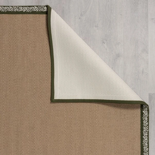 Add simple style to your space with the Embroidered Herringbone Border Runner. Pairing natural jute with an Embroidered cotton border in a natural Leaf motif for a timeless, minimalist look in your space. This woven Jute rug is ideal for busy zones due to its hard-wearing qualities and slip-resistant latex backing. We love using the Embroidered Herringbone Border Rug to create a welcoming layer in busy living spaces. The flatweave design makes it ideal for busy areas, working perfectly in Kitchens and Hallways.