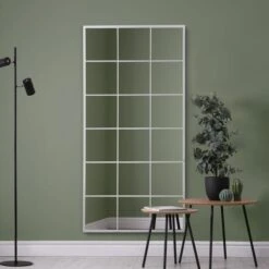 The Fenestra Modern Rectangle Window Indoor Outdoor Wall Mirror provides a sleek and stylish solution for your garden decor or interior living space. This full-length metal window mirror features frost-protected mirror glass and a painted iron metal frame, creating a contemporary and versatile addition to your indoor or outdoor space. Easily install with the key-slot fixing brackets on the mirror frame.