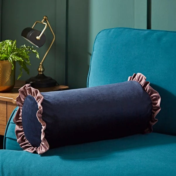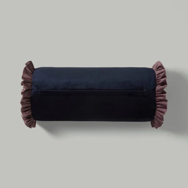 Elevate your space with the Frilled Contrast Bolster Cushion. Made of luxurious recycled velour, this stylish cushion is both sustainable and soft. Complete your look with matching products for an effortlessly chic home.