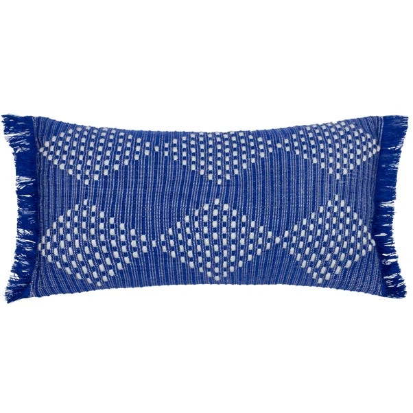 This furn. Kadie Rectangle Cushion features a woven geometric design crafted from durable, recycled PET fabric. Complete with a polyester reverse and fringed trim, this weatherproof cushion is suitable for both outdoor and indoor use, making it a versatile choice.