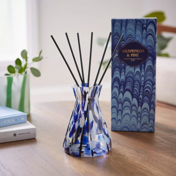 Capture the scent of a woodland walk with this uplifting diffuser. The confetti glass holder in blue and white is a stylish addition to a range of interior styles, and the fresh and invigorating Grapefruit & Pine fragrance will last 4 – 6 weeks, reaching every corner of your space.
