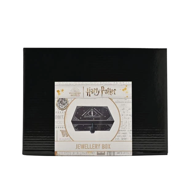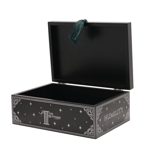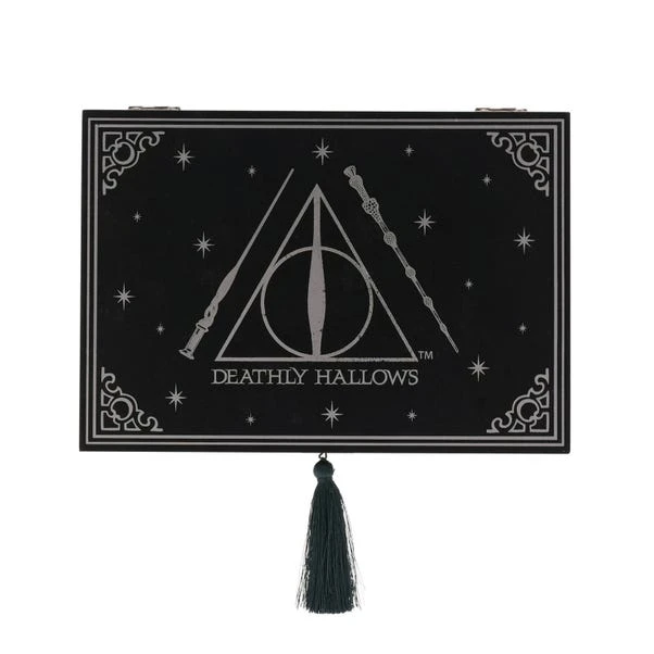 This striking keepsake box is a great way to store smaller items and celebrate the mystical world of Harry Potter. The black background carries a Deathly Hallows inspired design in white, including the recognisable triangular symbol on the lid, and is finished with a decorative tassel. This would be a perfect gift for fans of the hit series.