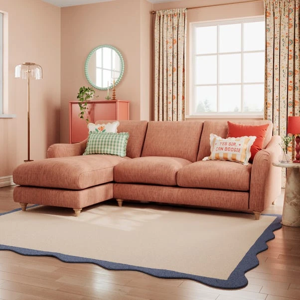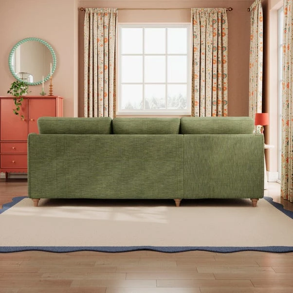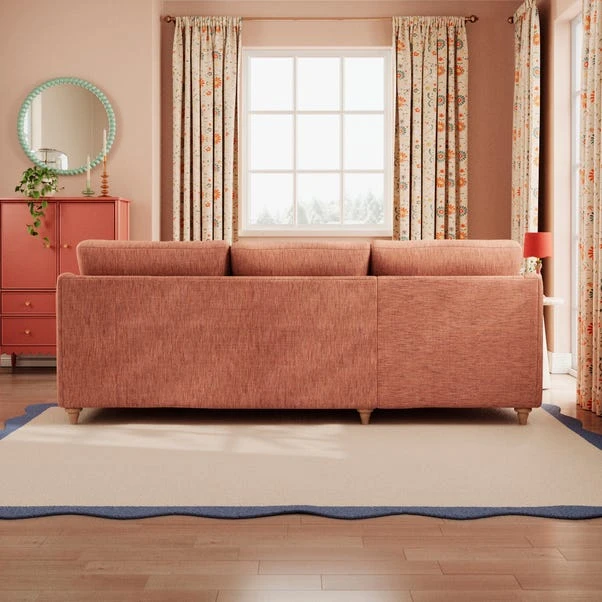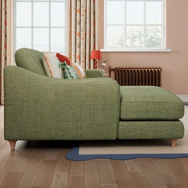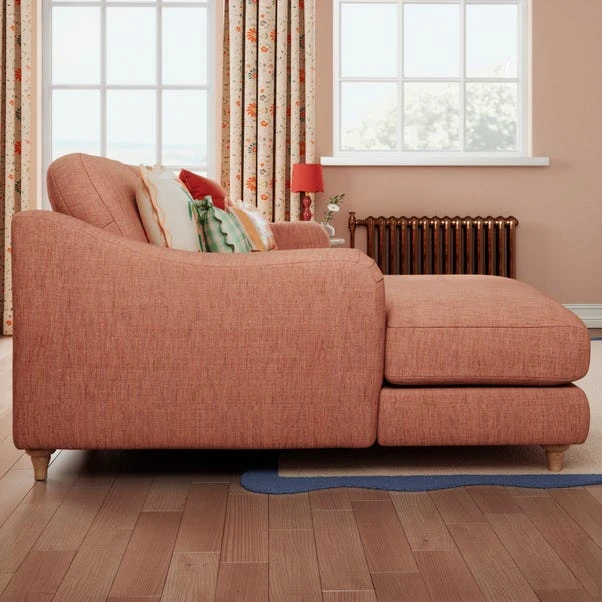 With elegantly curved arms and an extra pleat detail, this corner chaise boasts a sumptuously deep fibre-filled seat crafted with precision and care. The exquisite faux linen provides a diverse array of beautiful shades to complement any interior. Choose between left or right-hand facing to tailor the sofa to your space.