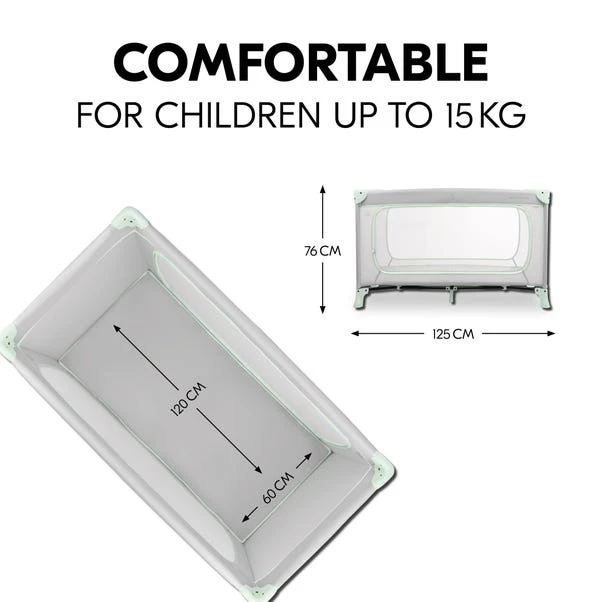 This versatile Dream N Play travel cot is ideal for use on holidays, visits to grandparents, or at home. Designed for safe sleeping and playing, it features large mesh windows for excellent air circulation and allows your little one to see you at all times. With a spacious 120 x 60 cm surface, it doubles as a comfortable playpen. Compact and easy to transport, it folds and unfolds with minimal effort and comes with a handy travel bag and foldable base. For added comfort, we recommend the optional fitted sheet, Bed Me 120 x 60 cm, available separately.