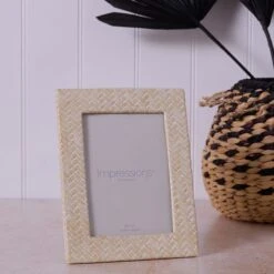 The frame features a neutral coloured woven effect with a textured touch, adding a unique and elegant look to any space. It is made from durable resin, ensuring longevity and a high-quality finish. Designed for versatility, this frame can be displayed in both landscape and portrait orientations, which makes it perfectly adaptable for showcasing different types of photos. This photo frame is available in multiple sizes.