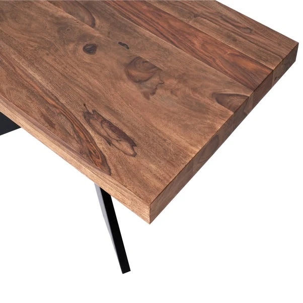 A fusion of rustic charm and industrial edge, the logan coffee table makes a striking focal point in any living room. Crafted from solid Sheesham wood, the natural grain adds warmth and depth, while the bold black metal X-frame legs introduce a contemporary contrast.
