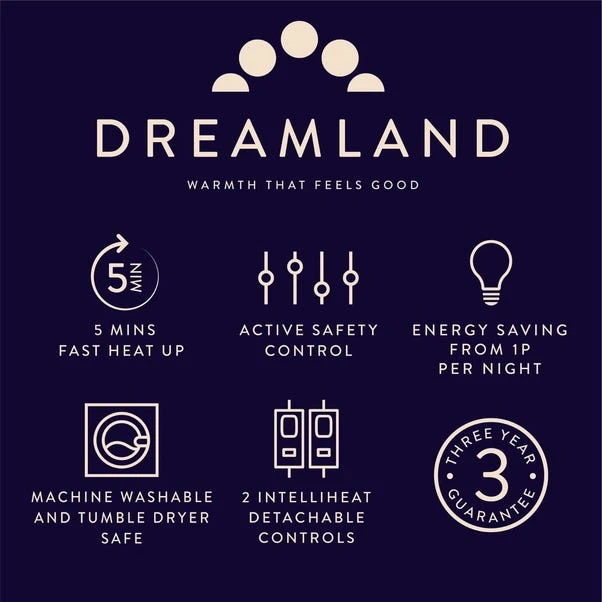 Experience the epitome of coziness with our premium electric blanket. Enjoy personalised warmth with adjustable heat settings at the touch of a button. With up to 4 different temperatures, you will be able to find something to suite your every need. No need to share controls either as our luxurious blankets come with 2 remotes to adjust the settings for 9 hours of warmth. Equipped with an active safety control means that you can drift off to sleep without a worry. Our electric blanket is also machine washable so you can keep it clean and fresh without the hassle.