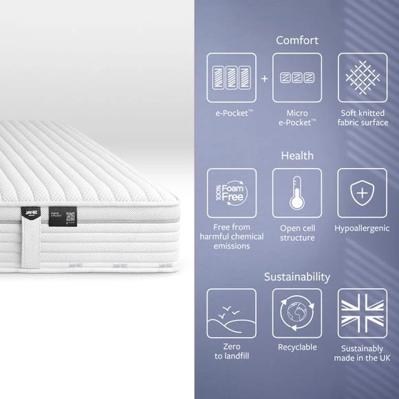 Immerse yourself in the epitome of sleep sophistication with our multi-layered mattress, seamlessly blending two spring units with additional comfort layers to deliver unparalleled support without compromise. The integration of extra-fine micro e-Pocket™ springs introduces a new dimension to responsiveness, working independently to delicately respond to even the gentlest of movements throughout the night. Meanwhile, the deep e-Pocket™ core takes centre stage, expertly moulding to your body’s contours and effectively preventing any transfer of movement across the mattress. This carefully engineered combination creates a sleep sanctuary where each layer collaborates to provide a superior level of support, ensuring a restful night’s sleep that aligns with the highest standards of comfort and innovation.