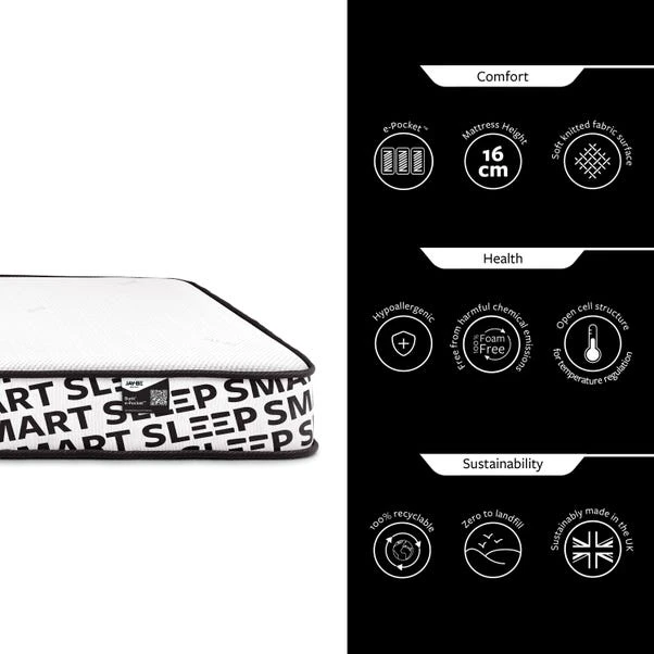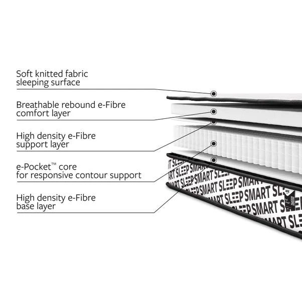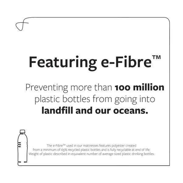 Specifically designed for bunk beds, this mattress is a triumph in providing adaptable body support, catering to the essential needs of growing bones and muscles. At its core lies the innovative e-Pocket technology, a dynamic feature that ensures flexibility and support where it matters most. Committed to both child well-being and environmental consciousness, this mattress is crafted from foam-free, eco-conscious materials. The Bunk Bed Elegance Mattress champions sustainability by incorporating breathable e-Fibre™ comfort layers, creating an optimal sleep environment. What sets this mattress apart is its dedication to the planet – 100% recyclable, it aligns with our commitment to reduce environmental impact.