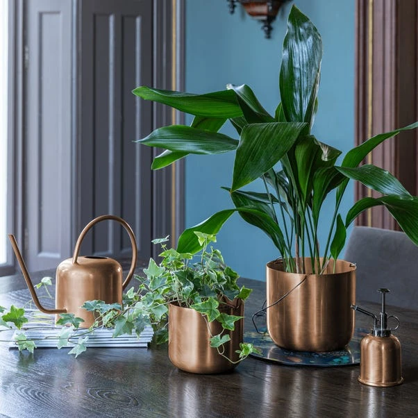 Crafted in India and finished by hand, the Kew Matt Copper Plant Mister offers a contemporary twist on a classic design. Its matte copper finish provides the ideal humidity for your plants while serving as a stylish addition to your gardening tools.