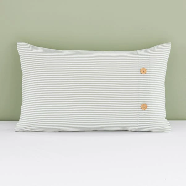 Designed with a relaxed, printed stripe and a decorative button detail, the Khai duvet cover and pillowcase set has been made from a soft to touch recycled polyester for easy care. Why not pair with our matching Khai Stripe Oxford pillowcase and blackout lined curtains for uninterrupted sleep?