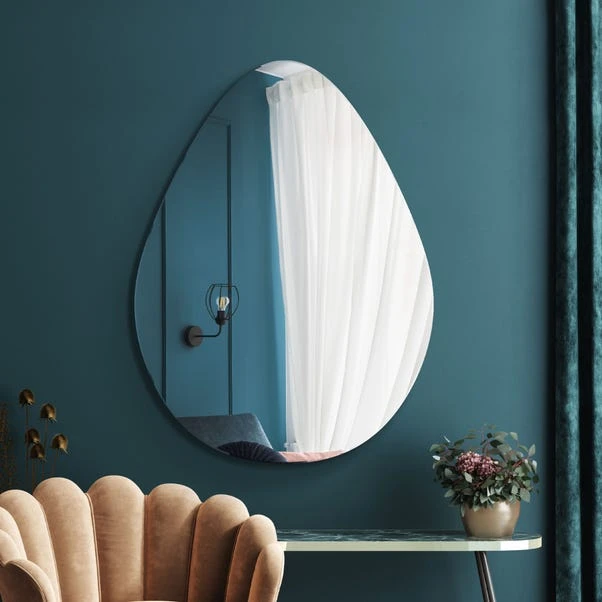 The Lapillus Frameless Pebble Wall Mirror brings a touch of modern elegance to your home decor. This pebble pond frameless wall mirror features polished mirror glass mounted on an MDF backing, with D loops fixing attached on the back, creating a stylish and sophisticated focal point for any room.