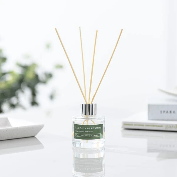 Experience a burst of zesty freshness with our Lemon & Bergamot Diffuser, infusing your home with a lively fruity fragrance. Revel in the harmonious blend of beautiful citrus notes and fresh bergamot, layered with a base of silky musk. With a 30ml capacity, this diffuser ensures a delightful ambience that lasts for 3 weeks, creating an uplifting atmosphere in your living space.