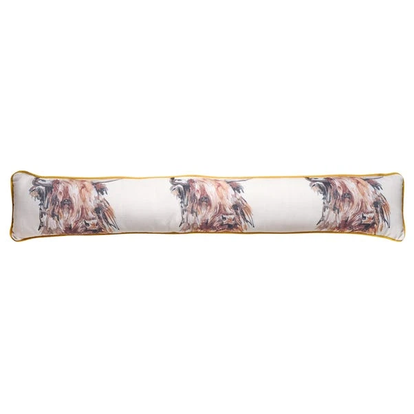 Presenting our captivating draught excluder sporting an elegant Meg Hawkins Highland Cow illustration, where delicate illustrations form an elegant and heartwarming visual tapestry. Made from 100% cotton, this excluder combines charm with durability, boasting a nature-inspired design that enchants and endures. Its luxurious front adds a touch of sophistication, while the plush polyester filling ensures lasting comfort, seamlessly blending with your decor. Keep your home cozy and chic with this charming draught excluder.
