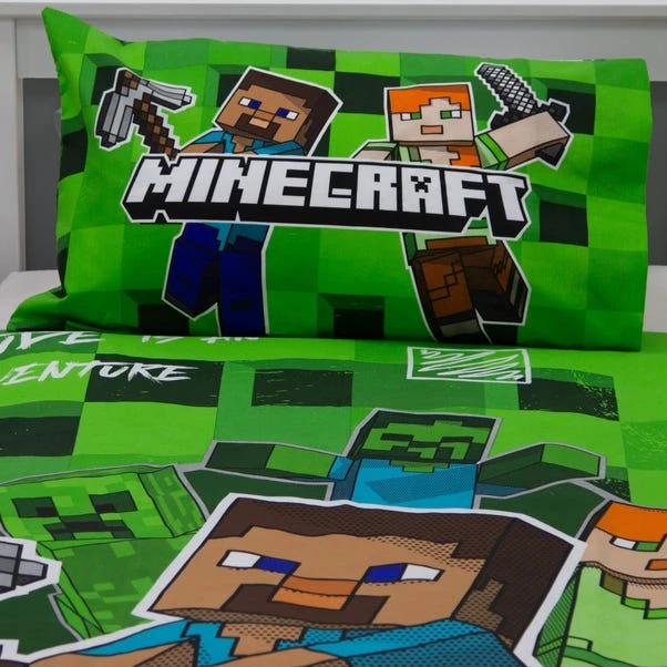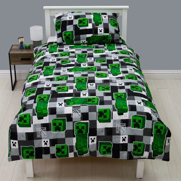 Dive into the world of Minecraft with this reversible duvet cover and pillowcase set. Perfect for any Minecraft enthusiast, it features a vibrant block check design. Made from a cotton-polyester blend, this set is both soft and durable. The popper closing ensures easy removal and washing. Both the duvet cover and pillowcase are machine washable and tumble dryer safe at a low temperature, making it a practical and fun addition to any single bed.