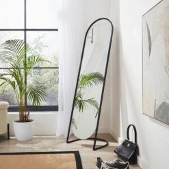 Embrace sleek and contemporary design with this modern arch mirror. The black frame adds sophistication and complements a variety of interior styles. Designed to be freestanding, this mirror leans against the wall, making it easy to position and move as desired. This mirror features a distinctive arch shape that adds a touch of modern sophistication to any space. Its clean lines and minimalist aesthetic make it a perfect fit for various interior styles, from minimalist and industrial to modern and eclectic.