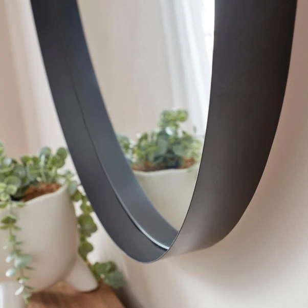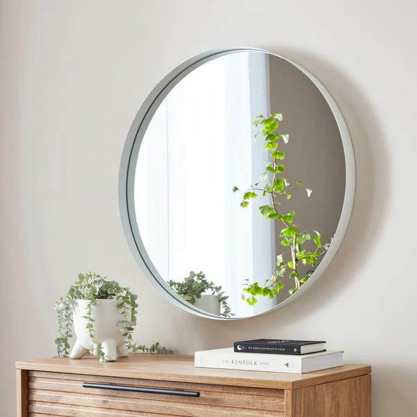 This round mirror is suitable for indoor use and has a slim, stepped back metal frame in a choice of colours. Wall hang it in your room for an airy feel and a sense of depth and space.