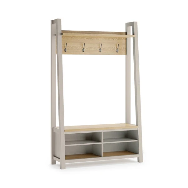 Keep your entryway tidy by keeping all your essentials in easy view with this hallway storage unit. Featuring 4 hanging hooks, it’s perfect for keeping your shoes, bags, coats and other frequently used items ready to hand.