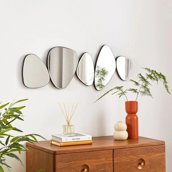 Transform your walls into a work of art with the Pebble Panelled Wall Mirror. Five pebble mirrors seamlessly joined together in a modern and contemporary design create an ambience of luxury that effortlessly elevates your home décor.