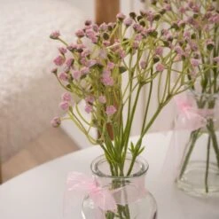 Set Of 3 Artificial Gypsophila Bundles In Glass Bottle Vases