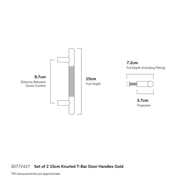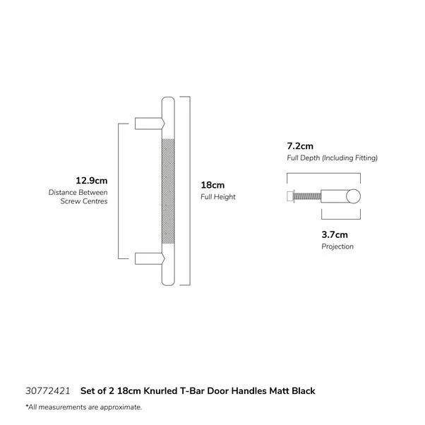 This set of 2 small knurled T-bar door handles are manufactured from recyclable aluminium metal and are available in a choice of colours to suit your space. They are great for enhancing your doors and work perfectly with various interior design styles including industrial, modern, transitional, and contemporary.