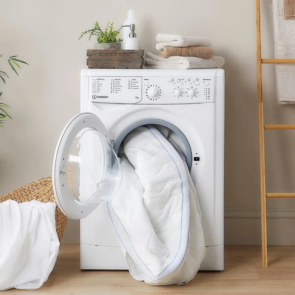 Designed for a cooler, more comfortable sleep, this mattress topper features Hydrocool Eco moisture control technology to help regulate body temperature throughout the night. A 5cm depth of supportive Airstream fibres gently cushions the body, relieving pressure and promoting natural alignment. Elasticated straps ensure a secure fit, while the soft-touch knitted cover is removable and machine washable for effortless maintenance.
