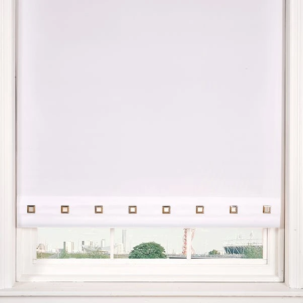 Available in a variety of colours, this elegant roller blind features a stylish square eyelet design and is ideal for bringing a touch of glamour to your home. This roller blind is ideal to coordinate with a variety of modern and traditional styles and is designed with a child safe mechanism for added peace of mind. Easy to install, this blind is supplied with all fittings included and is available in a selection of sizes to suit your requirements.