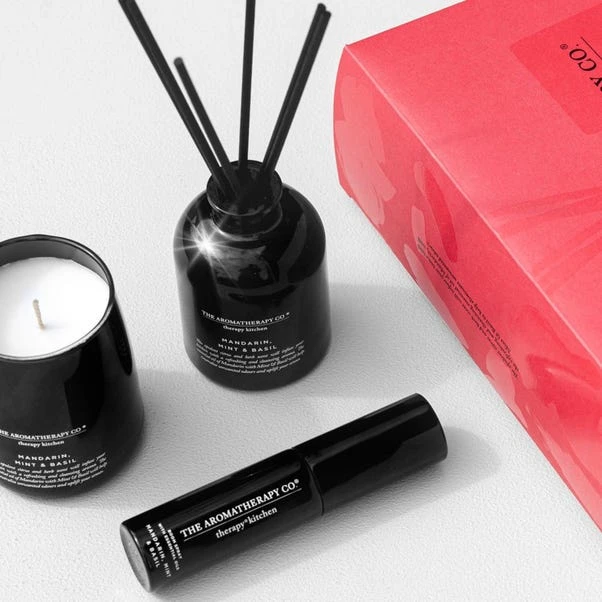 Transform an unpleasant or intense kitchen atmosphere to an uplifting and neutralising aroma with this blend of essential oils in a culinary inspired kitchen fragrance set. With a fresh and calming effect, this alluring blend of fragrances has been specially formulated to strengthen and calm your senses, purify your environment and naturally eliminate the air of unwanted cooking odours. With balancing and refreshing citrus notes of mandarin, naturally rich and powerful touch of mint to cleanse your environment and a distinct sweet undertone of basil, this set complete with a room spray, reed diffuser and candle will add stylish looks and revitalising scents to your space.