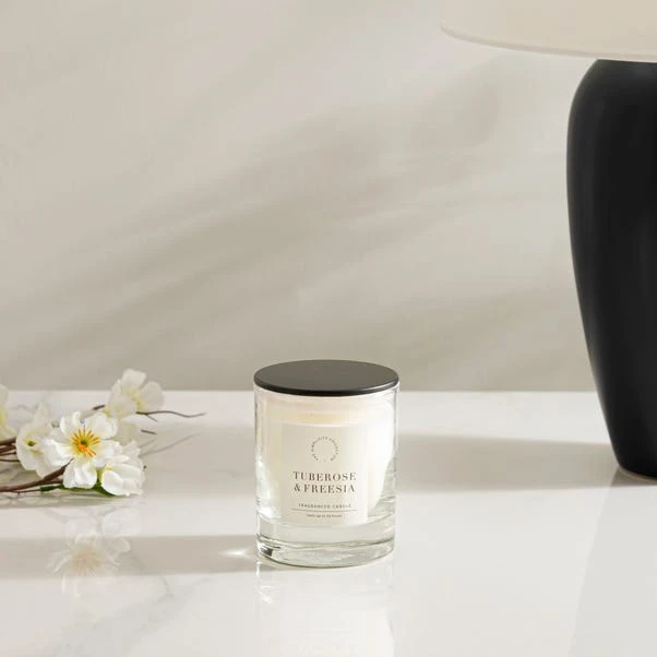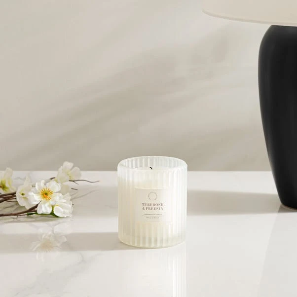 Fill your home with the elegant and exotic floral fragrance of Tuberose and Freesia. With top notes of delicate freesia and a heart of lingering tuberose, jasmine, and orange blossom, this scent is anchored with hints of musk and wood to create warmth – reminiscent of balmy evenings on a tropical island.