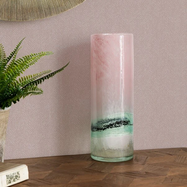 Artisan-made and hand-blown, this vase from Voyage Maison is full of character and charm. No two pieces are quite the same, with subtle variations in shape, colour, and texture that make yours truly one-of-a-kind. The dusky pink and black tones create a striking contrast that draws the eye, whether styled solo or filled with blooms. Its sleek cylinder shape lends itself to a range of uses, from centrepiece to shelf display. Available in a choice of sizes to suit your space, this vase is a beautiful blend of form and function with a refined, artistic edge.