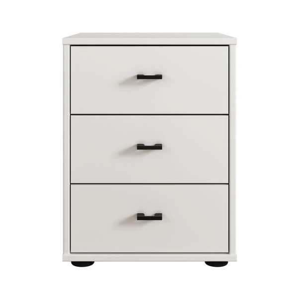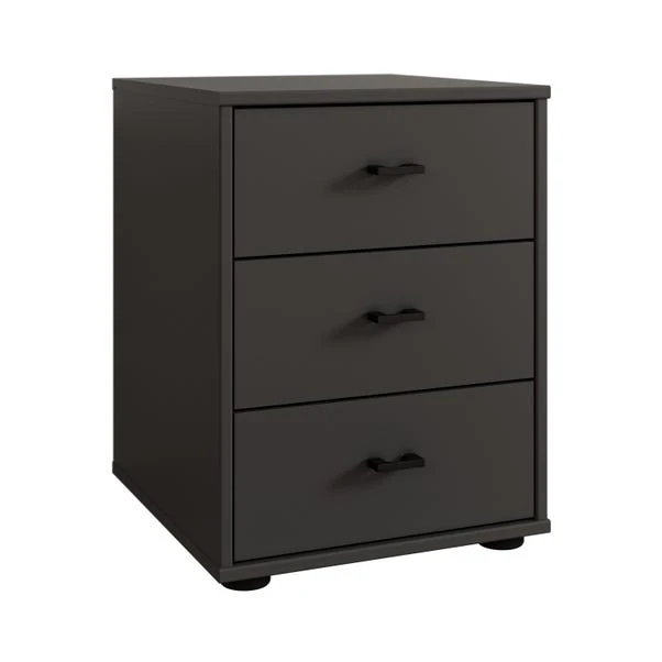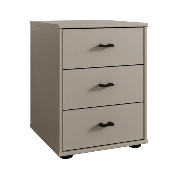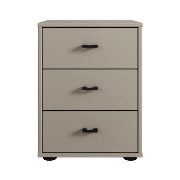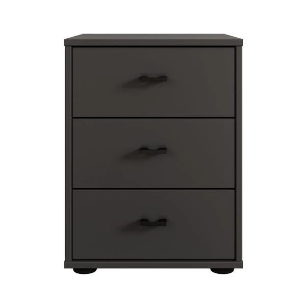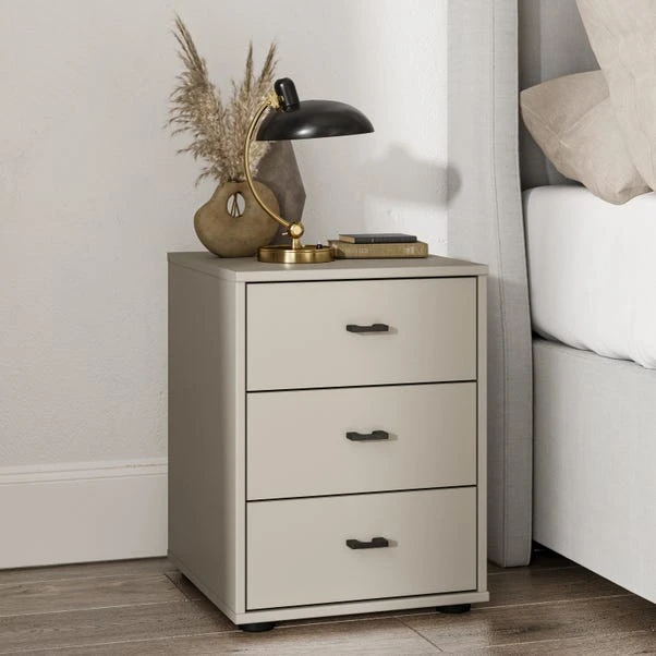 Experience elegance and practicality with the Kahla Matt 3 Drawer Bedside Table. Available in a choice of trendy colours, this bedside table boasts modern slate coloured handles, adding a touch of sophistication. Designed with longevity in mind, this piece is crafted with highly resilient metal fittings and scratch resistant fronts. Delivered fully assembled, the Kahla bedside will seamlessly integrate into your bedroom space.