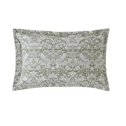 Adorn your bed with the iconic William Morris Strawberry Thief Oxford Pillowcase. Designed in 1883, this popular Arts and Crafts pattern is coloured in a rich olive green and warm cream palette on the face, with a fresh lighter green on the reverse. The 200 thread count cotton percale fabric brings the outside in, inspired by Morris’ garden at Kelmscott Manor. The pillowcase features a button fastening and coordinates beautifully with the corresponding bedding.