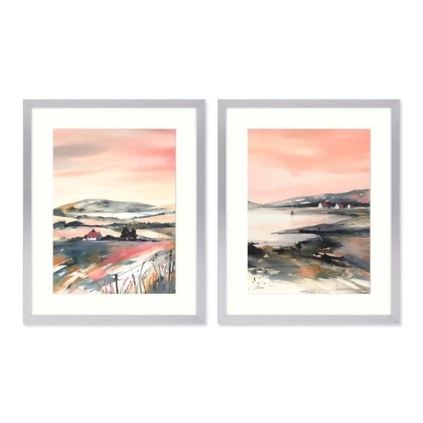 Create a stunning visual display with the Windswept Hill set of two framed prints by Elizabeth Baldin. Encased in elegant silver-colored frames, these watercolor landscape artworks, presented as mounted prints with a glass finish, capture the ethereal beauty of nature, adding a touch of serenity and sophistication to your walls.