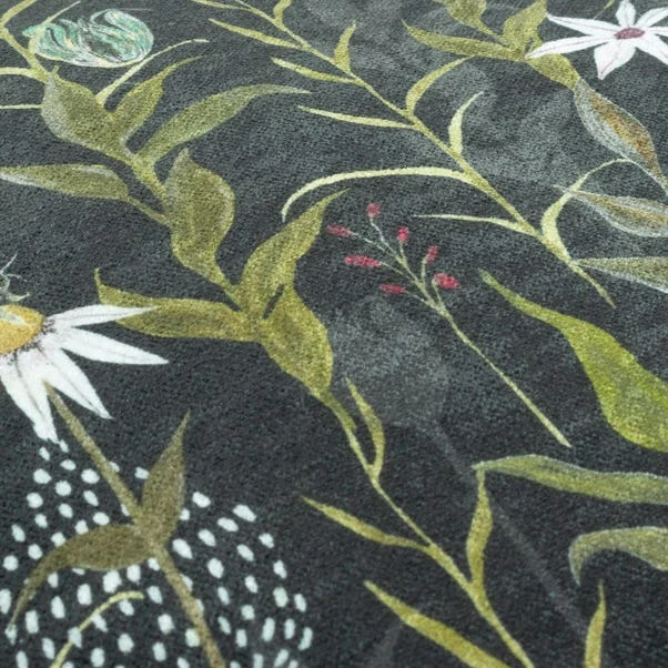 Celebrate the beauty of nature with the Wylder Nature Meadow Bloom Square Cushion Cover, featuring a detailed print of foliage, delicate blooms, and buzzing bees on chenille fabric. The plain reverse and piped edge provide a polished and refined look.